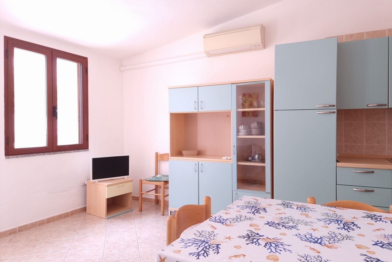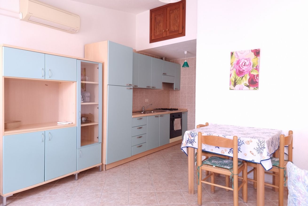 Arredato in modo gradevole e funzionale, si trova al piano terra, dispone di una veranda attrezzata. È composto da soggiorno con angolo cottura, 1 camera matrimoniale, 1 camera con due letti singoli a castello, servizio.